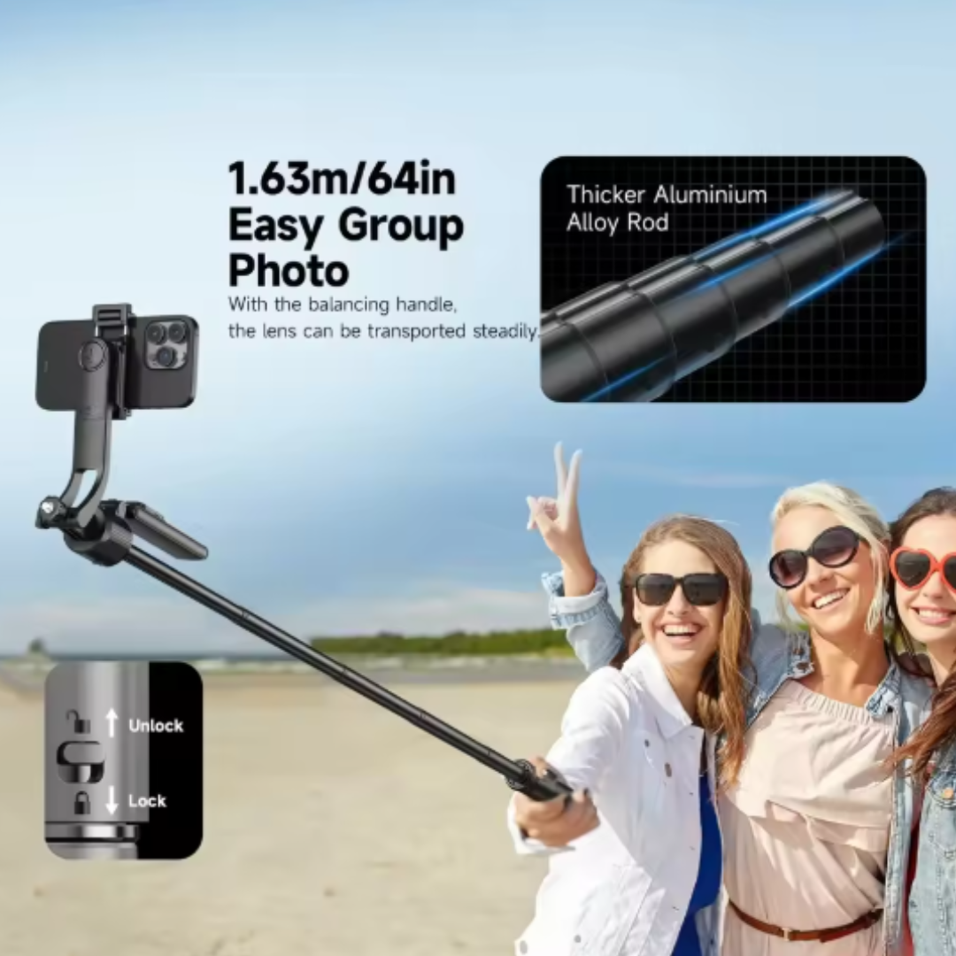 🪶 Selfie Stick + Tripod + Gimbal — Full Versatility