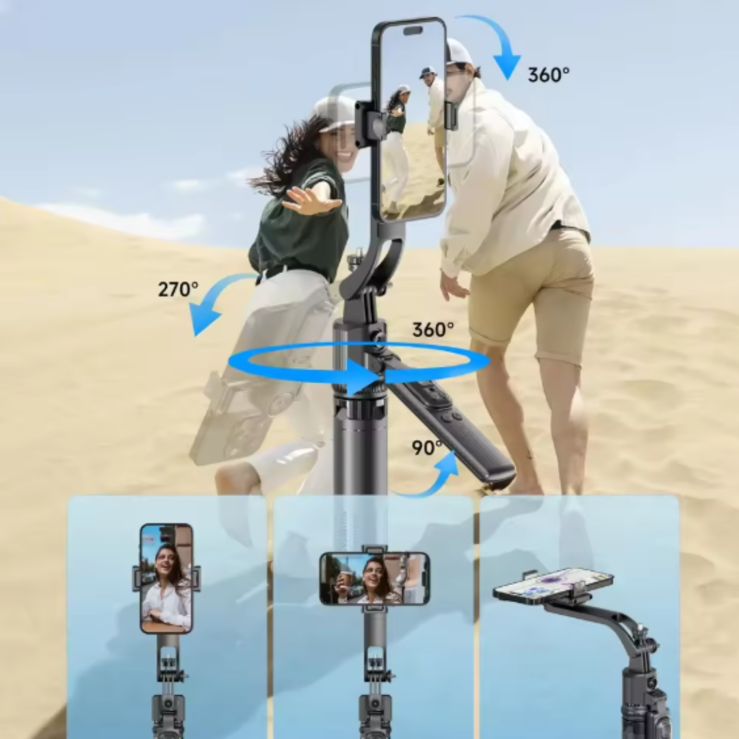 - 🔄 360° Auto-Rotation + Multi-Angle Gimbal Adjustment