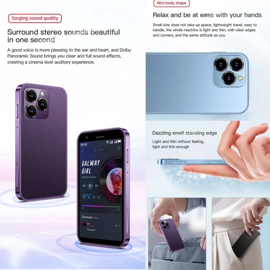 - 📱 3.0″ HD Display • Compact Mini Smartphone Design