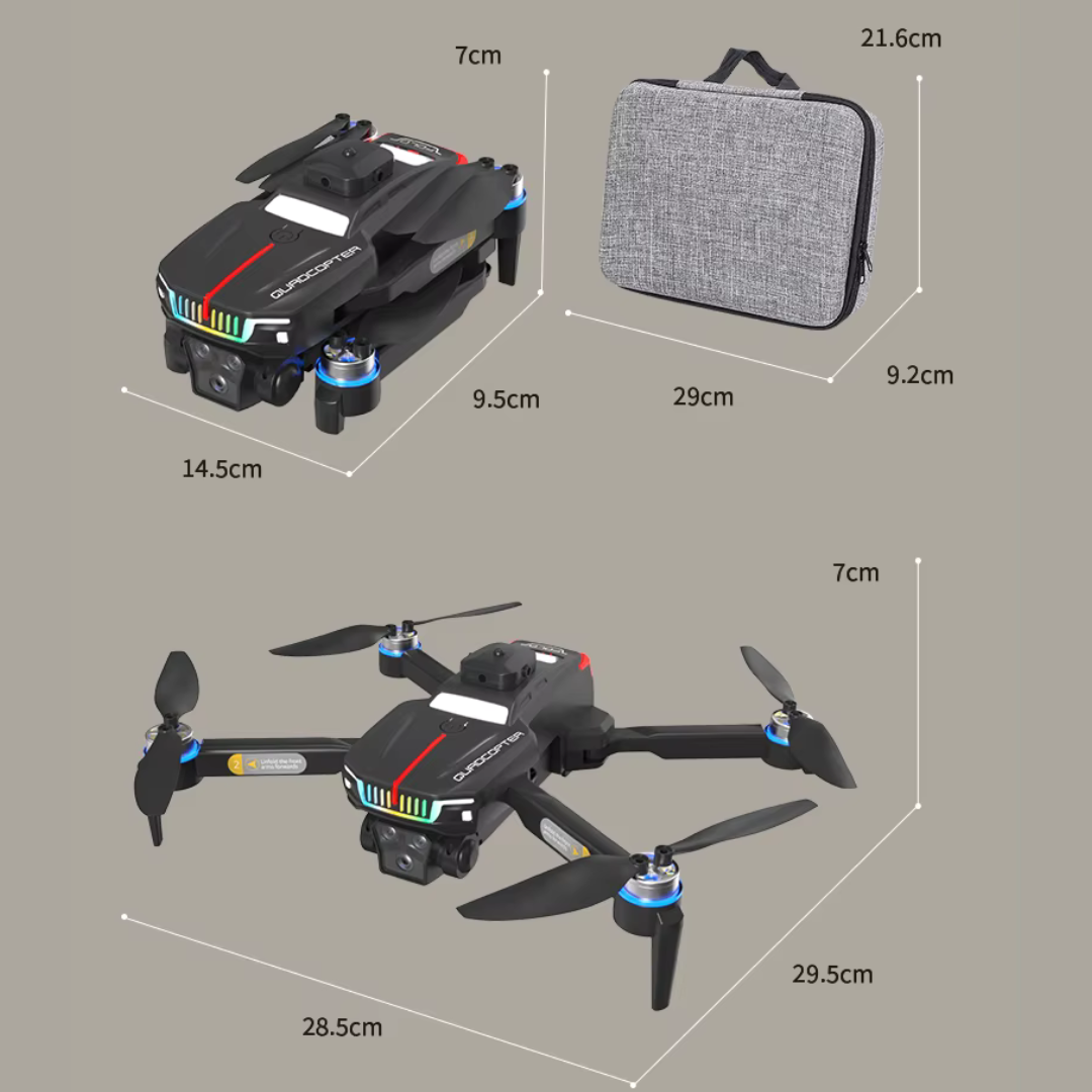 - 🧭 Brushless Motor • 1km Range • Foldable Design • Stable Hover Control