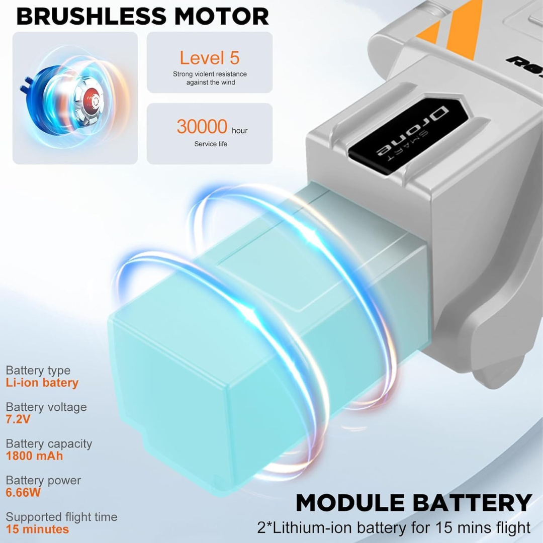 - 🔋 15-Minute Flight Time • 2× 1800mAh Battery