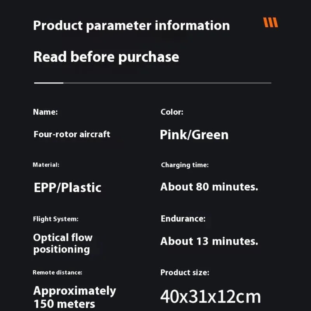 The aircraft uses a lithium battery that is included in the box. So, you can start flying after charging. Moreover, USB charging makes it quick and easy. As a result, you spend more time flying and less time waiting.