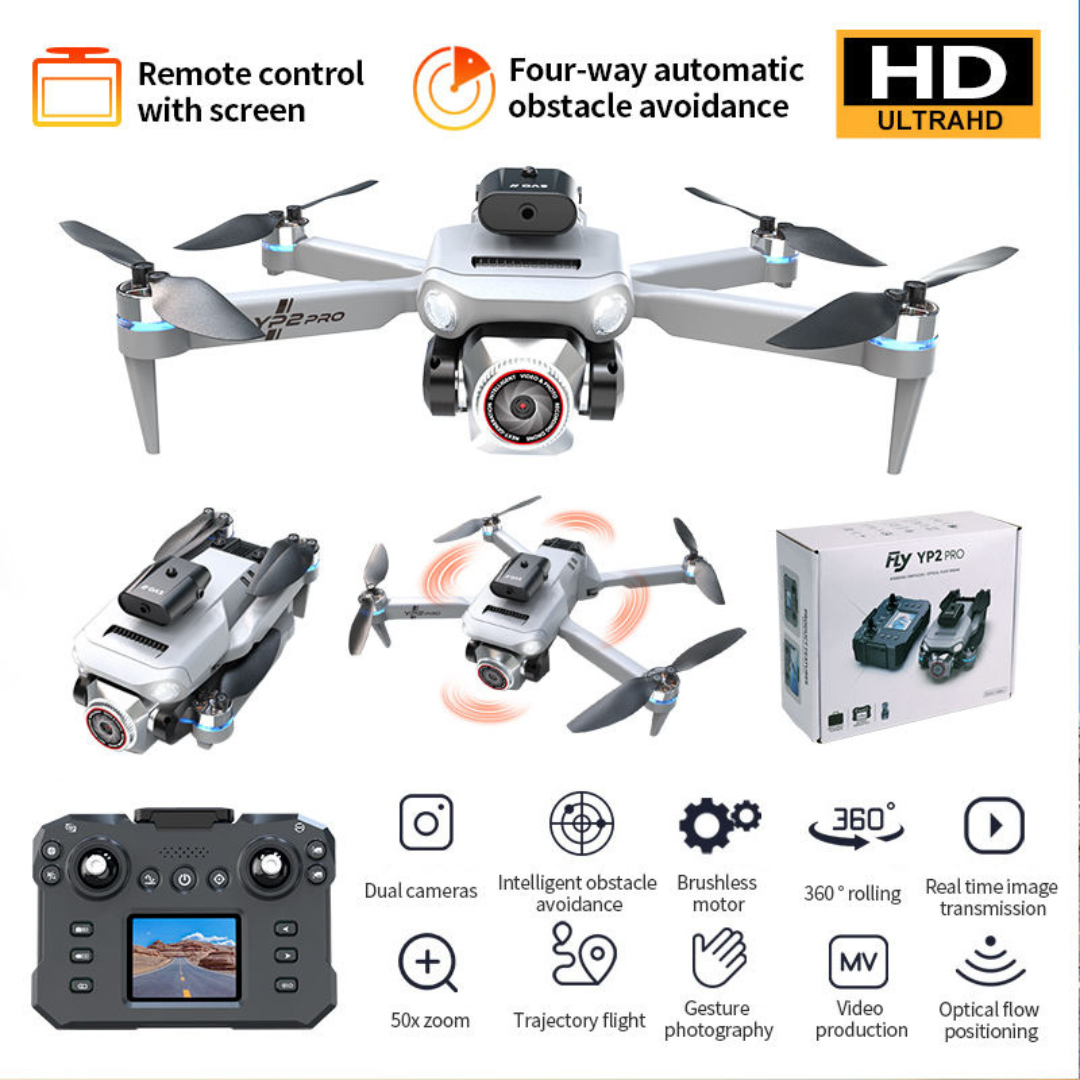 Upgrade your daily tech experience with the YP2 Pro 4K Dual Camera Drone – Smart Obstacle Avoidance, Screen Remote & Brushless Power.